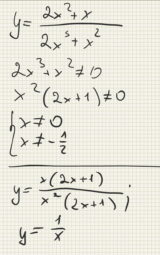 Постройте график функции у = 2х^2+х / 2х^3+х^2 и определите, при каких значениях k прямая у = kx имеет с графиком ровно одну общую точку.