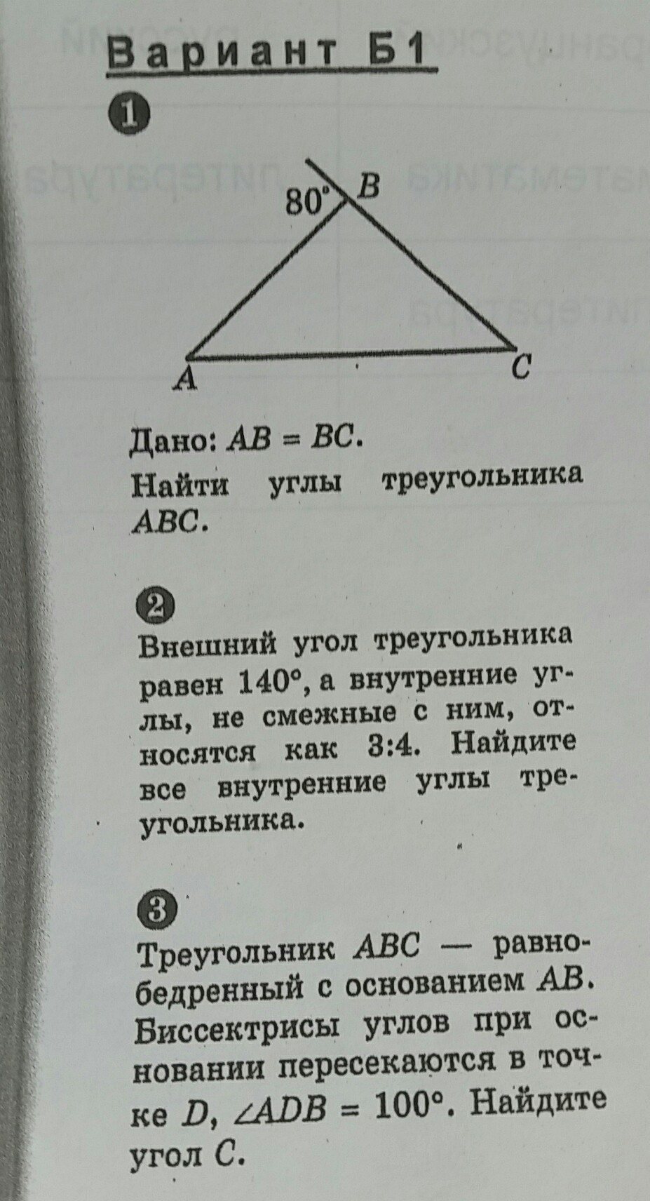 3) образуется треугольник АDB, в котором углы при основании равны 180-100)/2