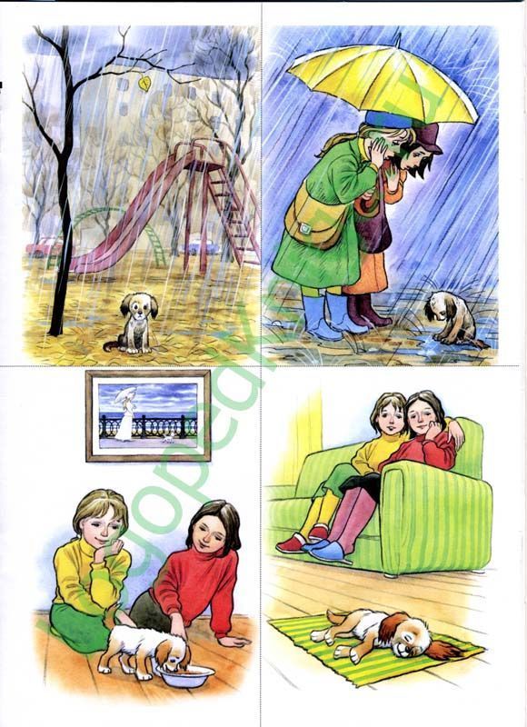 Началось всё с осеннего и дождливого дня. Таня и её мама шли домой ,и увидели маленького щенка. Он стоял и казалось что он совсем не счастлив., и им стало его очень жалко и они решили взять его домой. Они накормили его и он лёг спать он стал счастливым . Таня и мама были рады что они взяли его домой.