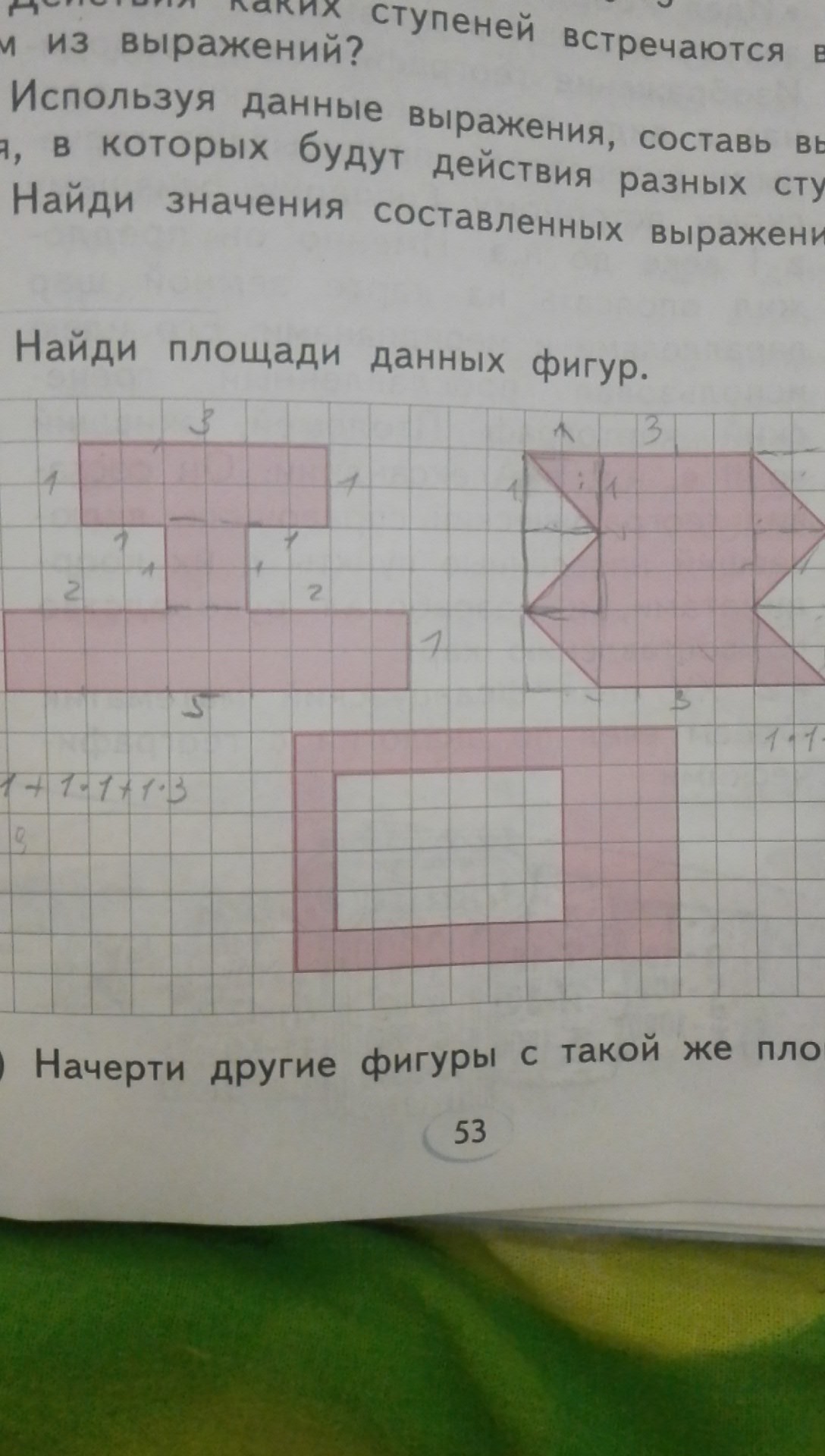 Площадь третье фигуры равна
