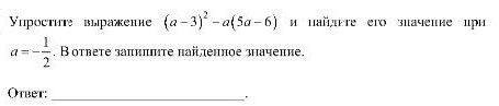 a^2-6a+9-5a^2+6a=9-4a^2=(3-2a)(3+2a)=(3-2*(-1/2))*(3+2*(-1/2))=4*2=8