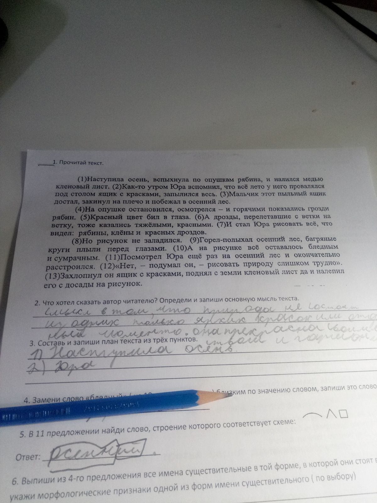 Осень рябина лист Юра лето столом ящик красками мальчик ящик плечо лес опушке грозди цвет глаза дрозды ветки ветку рябины клены дроздов ресунок круги глазами ресунок природу