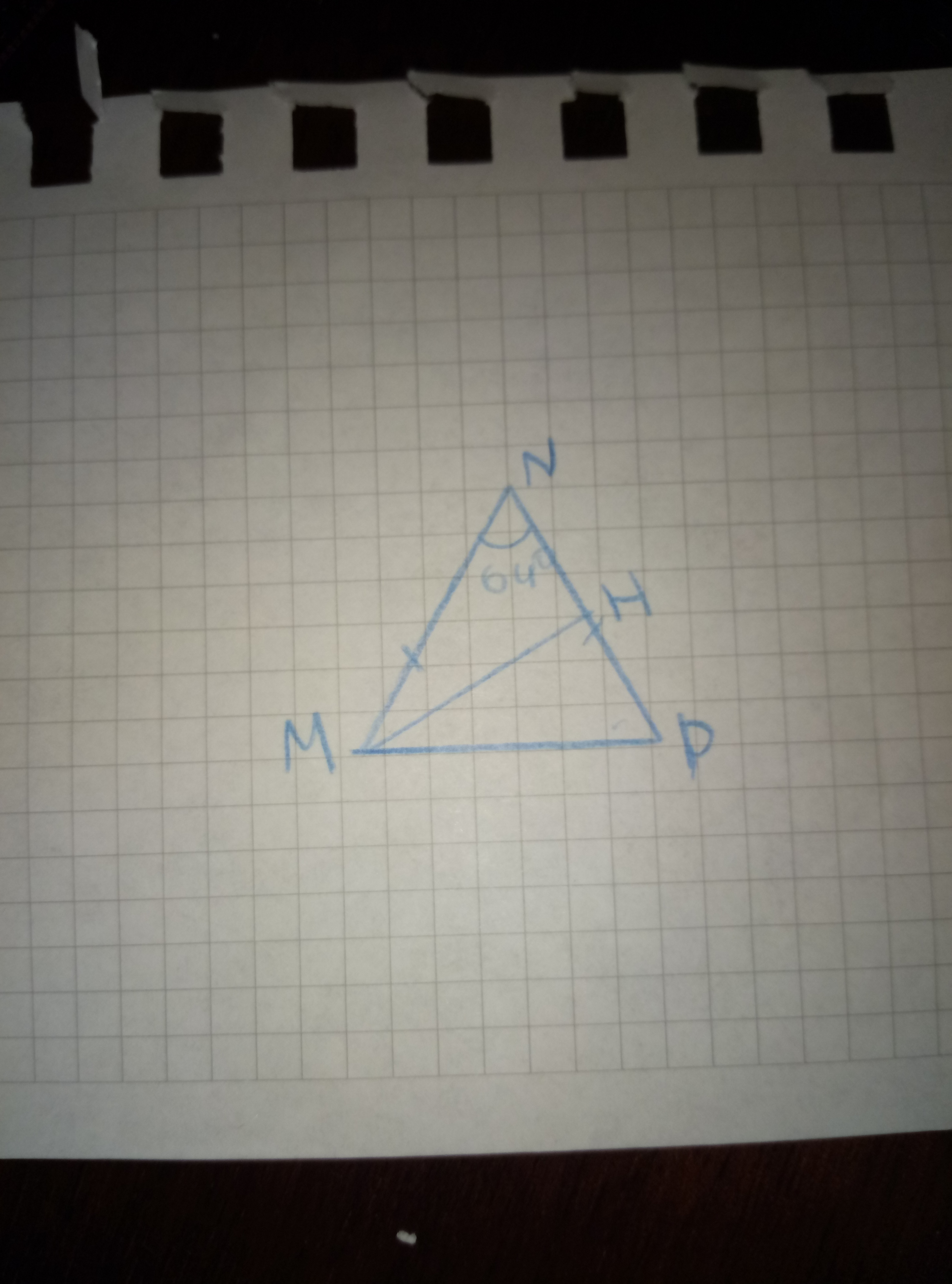 Вравнобедренном треугольнике MNP с основанием MP и углом N равным 64 проведена высота MH.