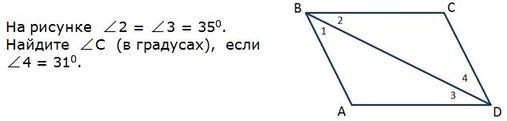 рассмотрим треугольник BCD. Сумма всех углов в треугольнике равна 180 градусов. Известны два угла 2 и 4.Величина третьего угла равна 180-(31+35)=114