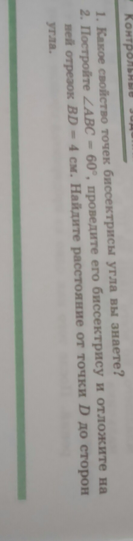т.к BD - биссекриса, то DBC = ABD = 30, треуг BCD = треуг ADB - прямоугольные, в прямоугольном треугольнике напротив угла в 30 градусов лежит сторона равная половине гипотенузы, а она по условию равна 4, следовательно расстояние равно 4/2= 2.