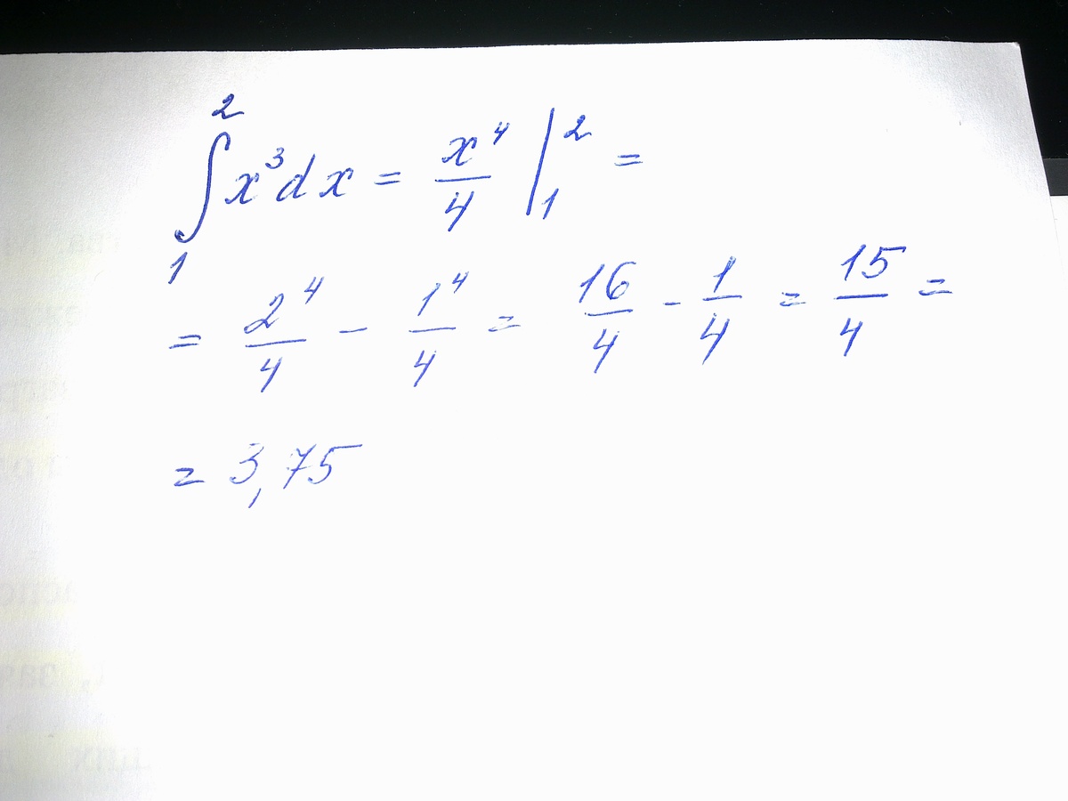 intlimits^2_1 {x^{3}} , dx = x^4/4 l21= 2^4/4-1^4/4=3.75