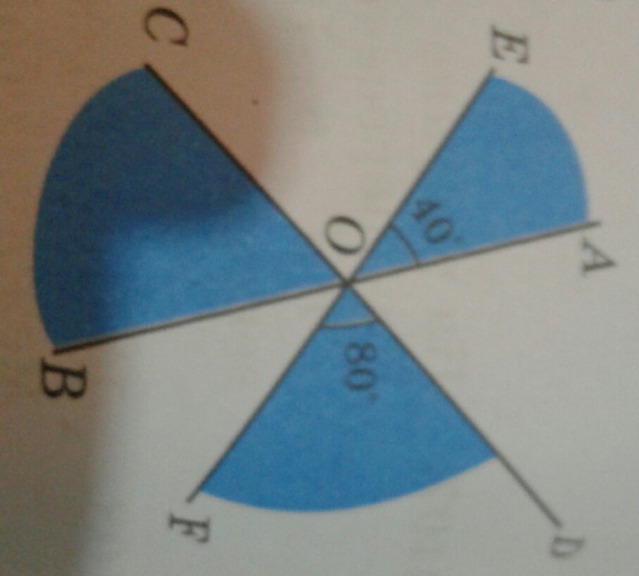 прямые AB,CD и EF пересекаются в точке O. угол AOE =40 ГРАДУСАМ В УГОЛ DOF =80 ГРАДУСАМ Найдите градусную меру углаCOB рис.7.8