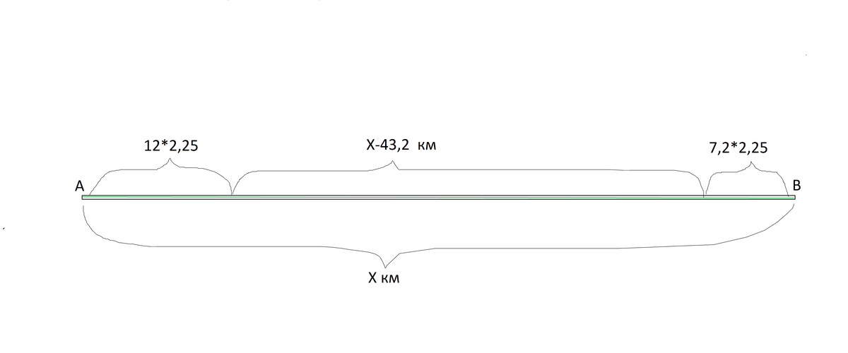 значит х-43,2 это расстояние между велосипедистами через 2ч15мин