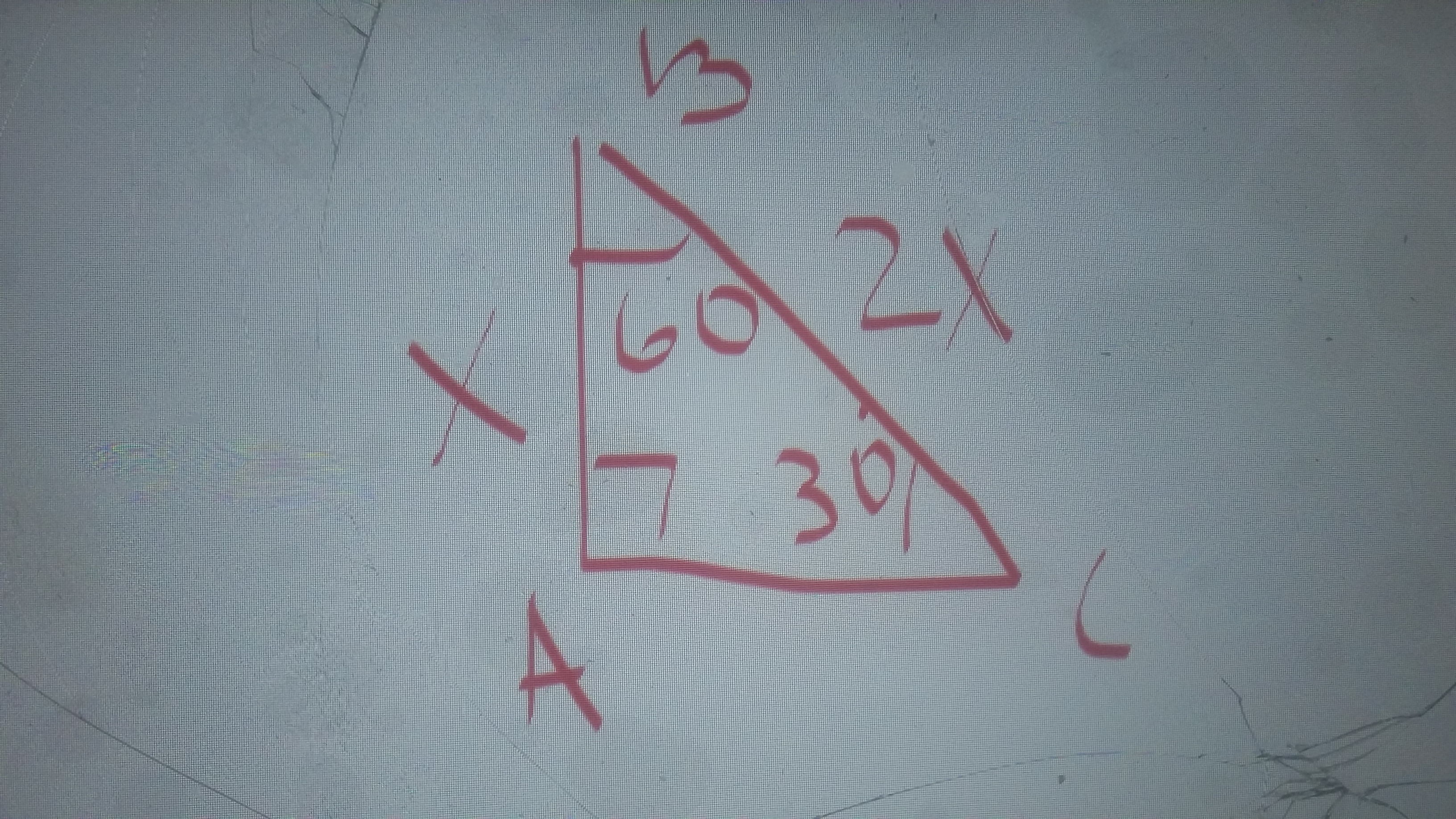 Итак, раз это прямоугольный треугольнтк и один угол равен 60 градусов, то логично предполодить, что третий угол равен 30 градусов (сумма всех углов треугольнка равна 180). Таким образом меньший катет лежит напротив меньшего угла, т.е. напротив 30 градусов. А как нам известно, в прямоугольном треугольнике, катет, лежащий напротив угла 30 градусов равен половине гипотенузы. Возьмем гипотенущу за 2х, тогда катет равен х.