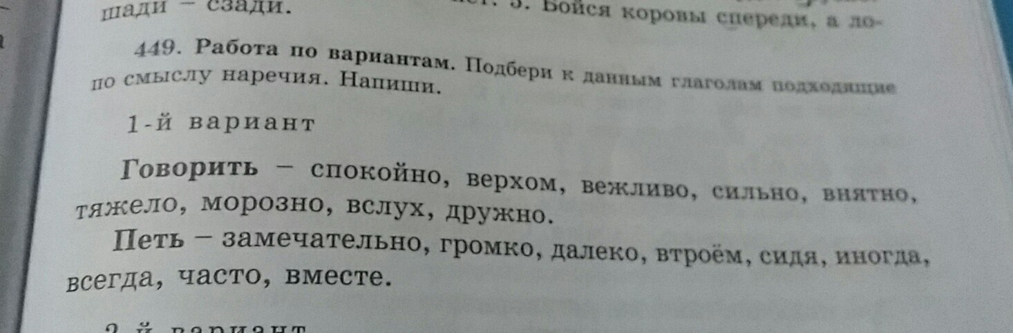 Петь-замечательно, громко, втроём, сидя, иногда, всегда, вместе, часто