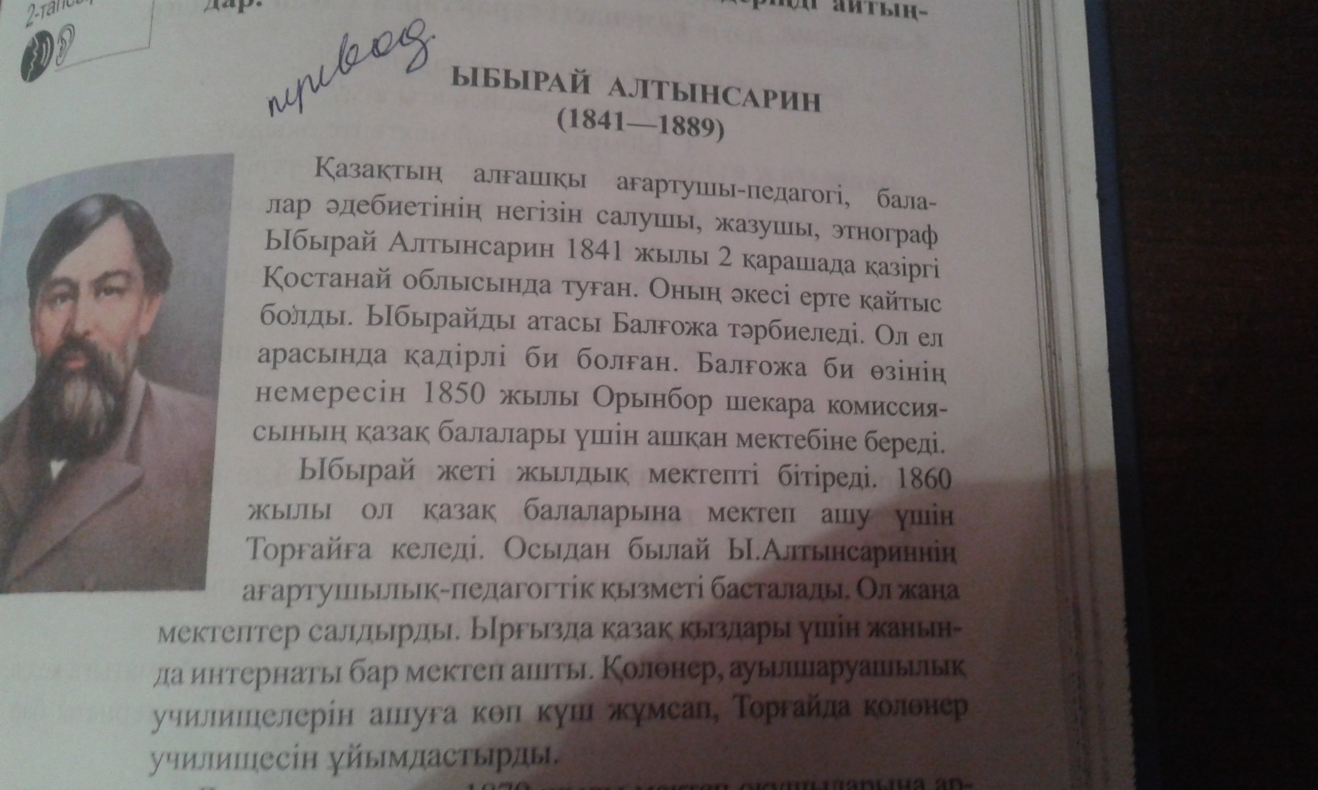 Алтынсарин положил начало светскому образованию казахского народа. Открыл четыре двухклассных центральных русско—казахских училища, одно ремесленное училище, одно женское училище, пять волостных школ, два училища для детей русских поселян. А также учительскую школу в Троицке, немного позже она была переведена в Оренбург.ибрай