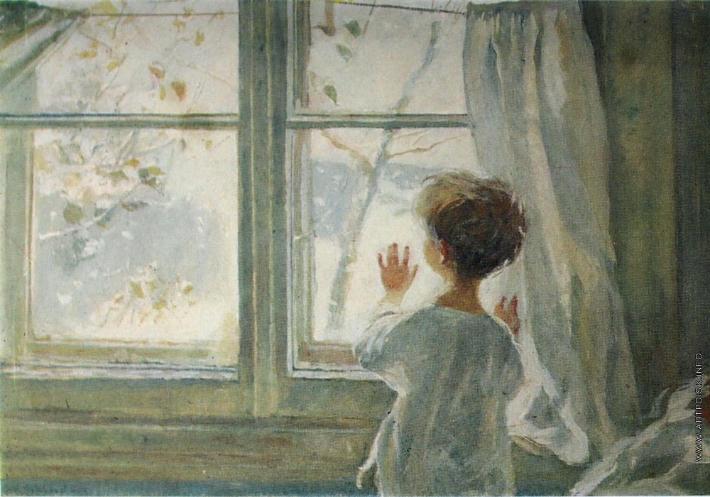 Основная часть: Как много за ночь выпало снега. Вечером было так тихо и снег не шел. А ночью Зима разбушевалась и бросила на наши дома и деревья столько снега, что трудно будет выбраться из избы. Немного грустная картина, но все равно красиво! На картине С.А. Тутунова мы видим маленького мальчика, который стоит у окна и удивляется красотам Зимы. А на дальнем плане этой картины едва виден другой дом,, который почти весь завален снегом. А снег все идет хлопьями и ветер кружит его в ритме вальса. Как красиво! Мальчик , конечно же, мечтает о Новом годе, о елке, о красивых игрушках на ней и, конечно, о чуде. Ведь под Новый год, все верят в чудеса и ждут их, даже взрослые.
