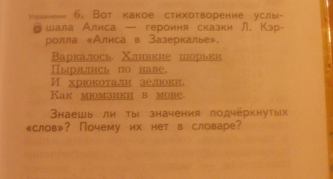 вот какое стихотворение услышала Алиса-героиня сказки Л.Кэрролла Алиса в зазеркалье.