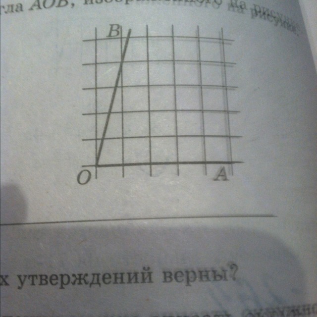Из точки В (т.е. там где линия ОВ проходит через пересечение клеток, обозначим данную точку В) опускаем перпендикуляр на прямую ОА, обозначим точку Н. Получился прямоугольный треугольник ОВН. По определению: Тангенсом острого угла прямоугольного треугольника является отношение противолежащего катета к прилежащему, т.е. tgO=ВН/ОН. ВН=4 клетки, ОН=1 кл, следовательно: tgO=4/1=4.