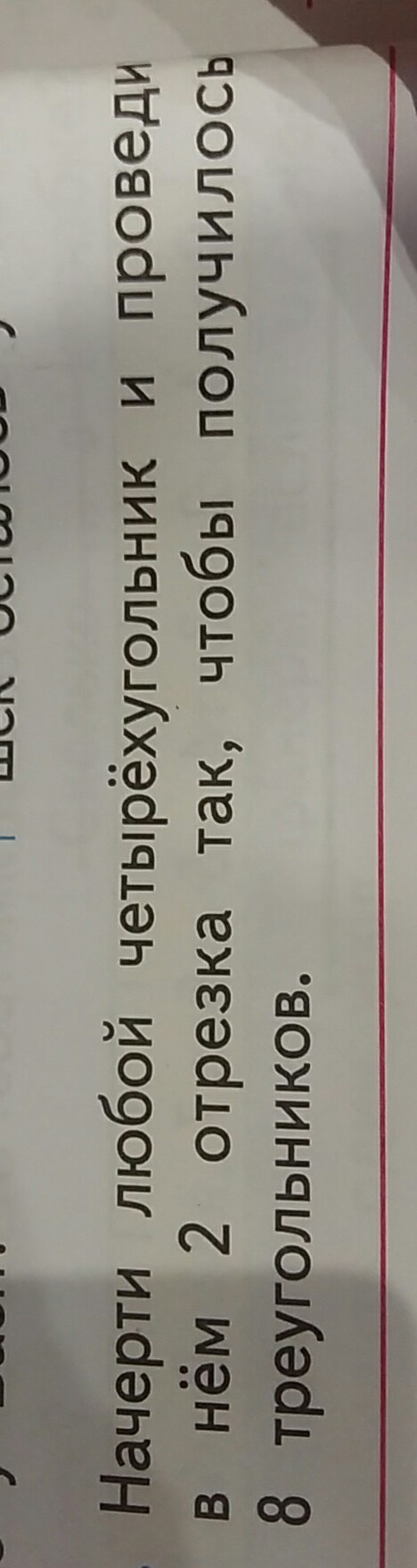 начертите любой треугольник и проведи в нем 2 отрезка так, чтобы получилось 8 треугольников