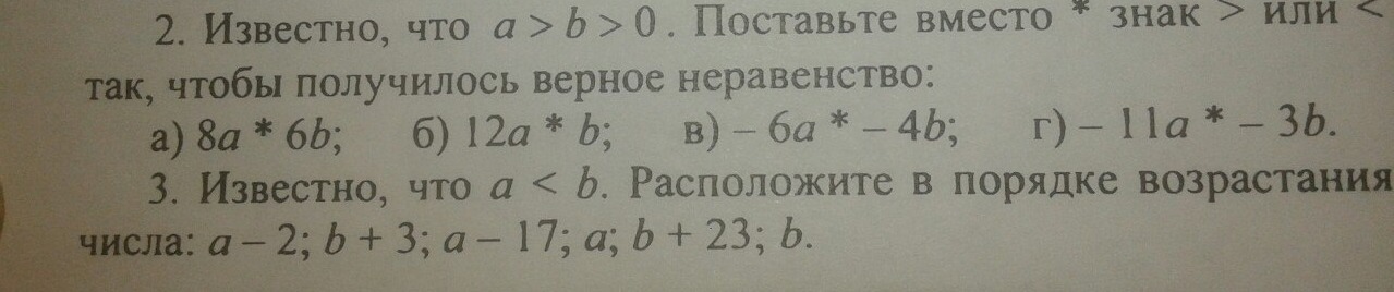 2.a) 8a>6b б) 12a>b в) -6a<-4b г) -11a<-3b