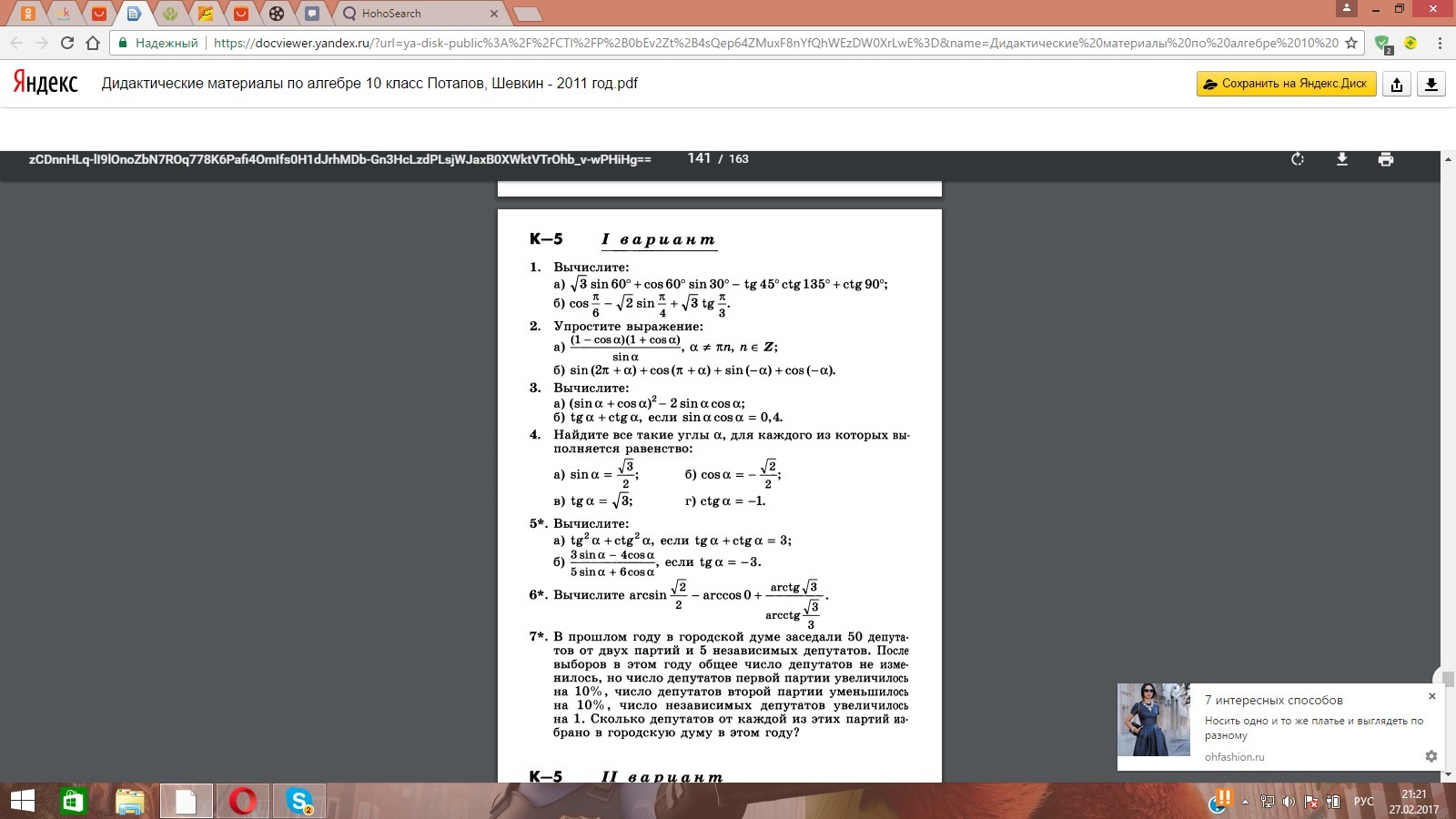 1) а) √3*sin 60 + cos 60*sin 30 - tg 45*ctg 135 + ctg 90 =