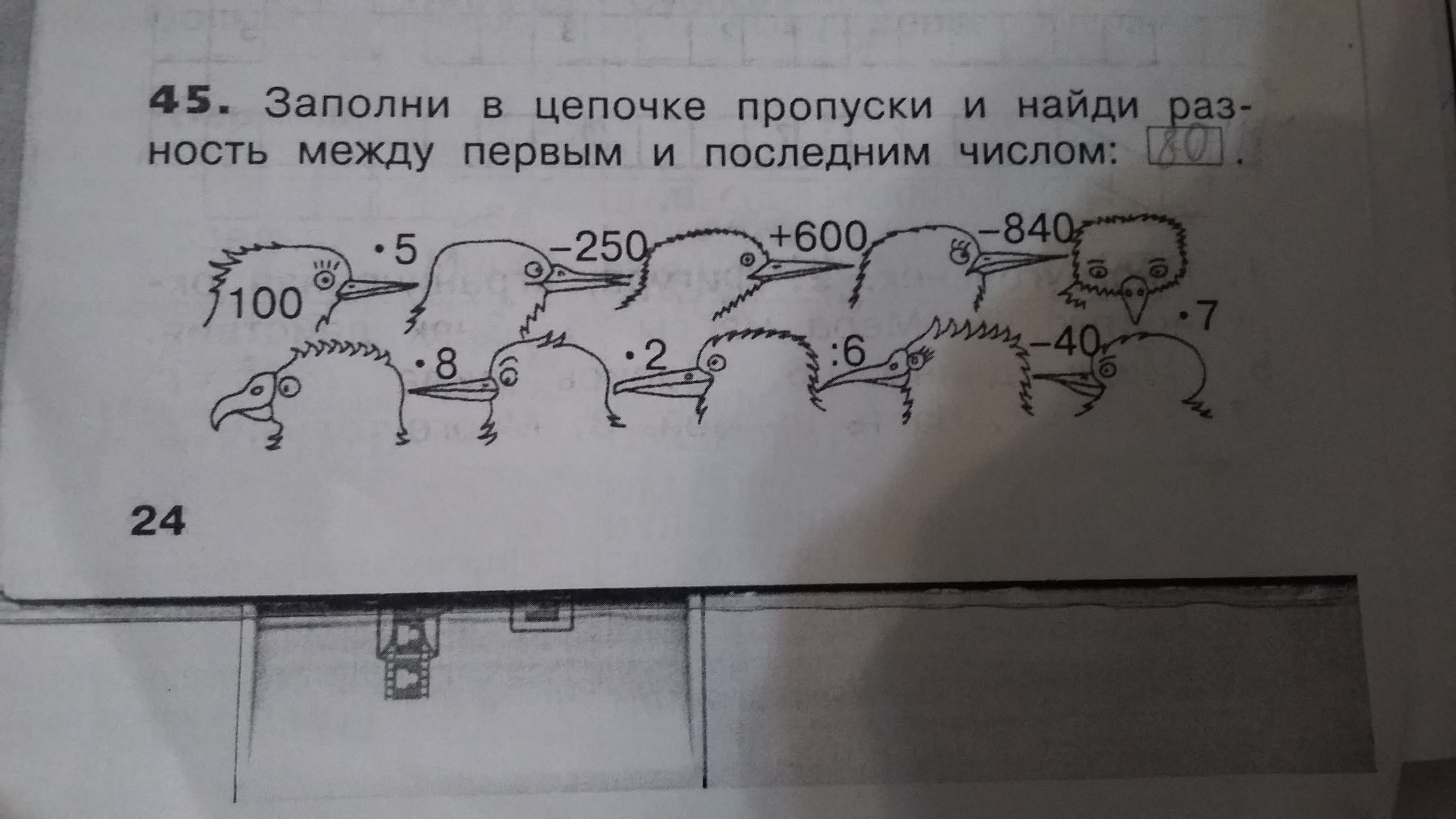 заполни в цепочке пропуски и найди разность между первым и последним числом