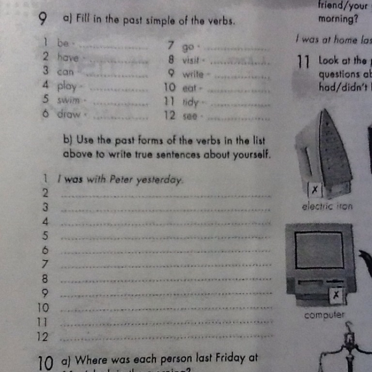 was had could played swam drew went visited wrote ate tidied saw