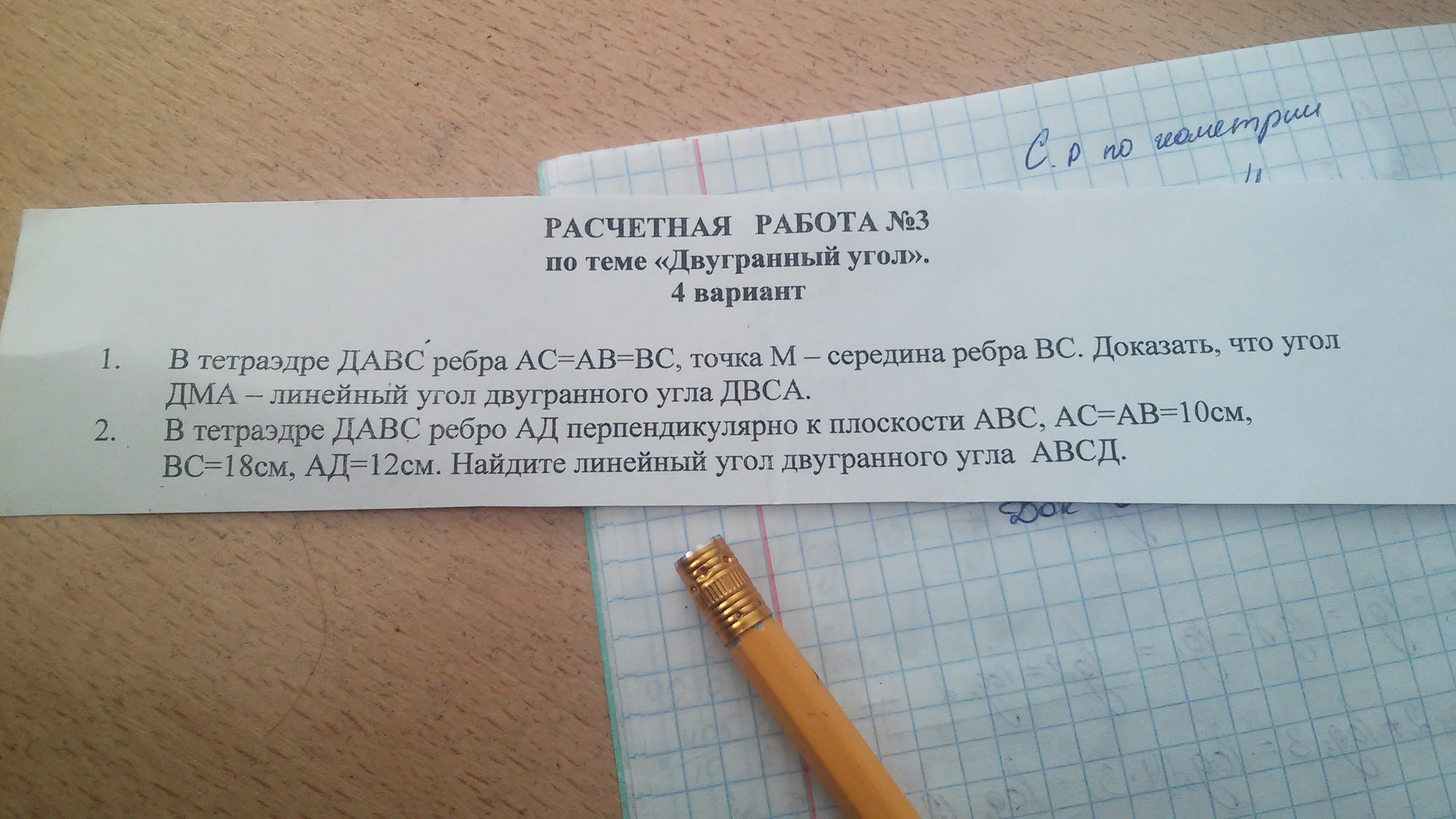 АМ⊥ВС и ДМ⊥ВС, значит ∠ДМА - линейный угол двугранного угла ДВСА.
