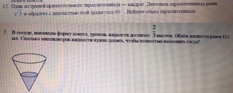 7) 1) V = 1/3 · h · Socн = 1/3 · h · π · (D/2)2