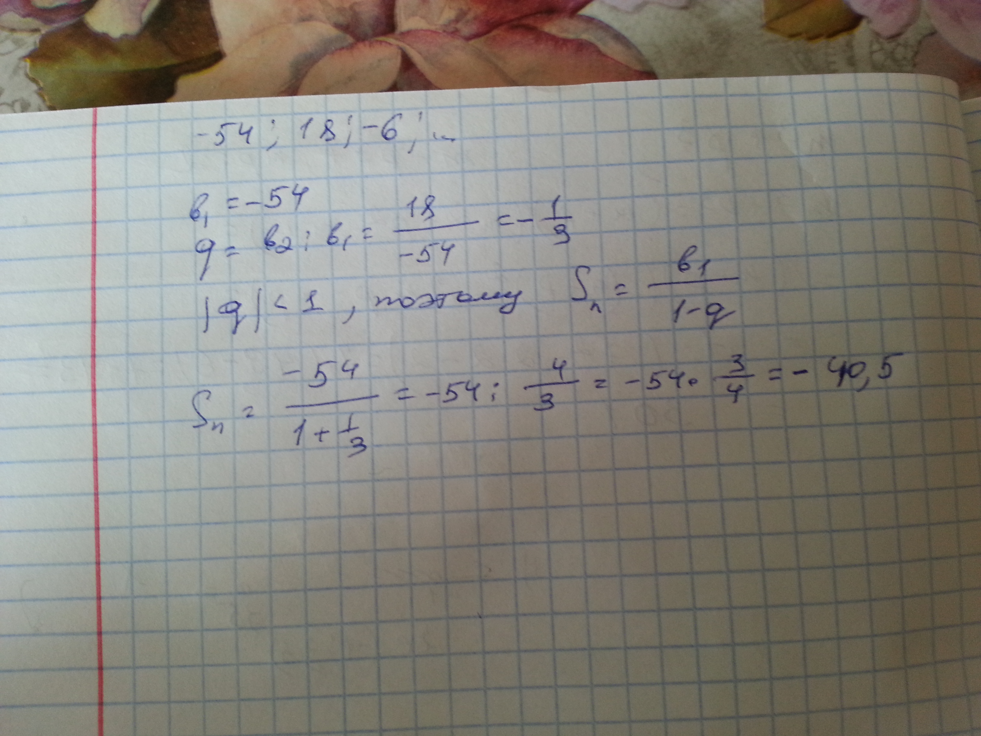 Найдите сумму бесконечной геометрической прогрессии -54 18 -6