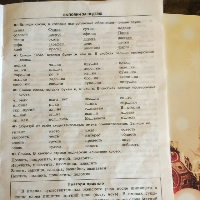 ножки,ложки,корешки,мышка,сапожки,чашка,шишка,рожь,ладожеа,снежки