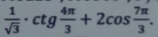 frac{1}{sqrt3}cdot ctgfrac{4pi}{3}+2cdot cosfrac{7pi}{3}= frac{1}{sqrt3}ctg(pi +frac{pi}{3})+2cdot cos(2pi +frac{pi }{3} )=\\= frac{1}{sqrt3}cdot ctgfrac{pi }{3}+2cdot cosfrac{pi }{3}= frac{cosfrac{pi}{3}}{sqrt3cdot sinfrac{pi}{3}}+2cosfrac{pi }{3}=\\=frac{cosfrac{pi}{3}+2cdot sqrt3cdot sinfrac{pi}{3}cdot cosfrac{pi}{3}}{sqrt3cdot sinfrac{pi}{3}}= frac{cosfrac{pi}{3}cdot (1+2sqrt3cdot sinfrac{pi}{3})}{sqrt3cdot sinfrac{pi}{3}} =
