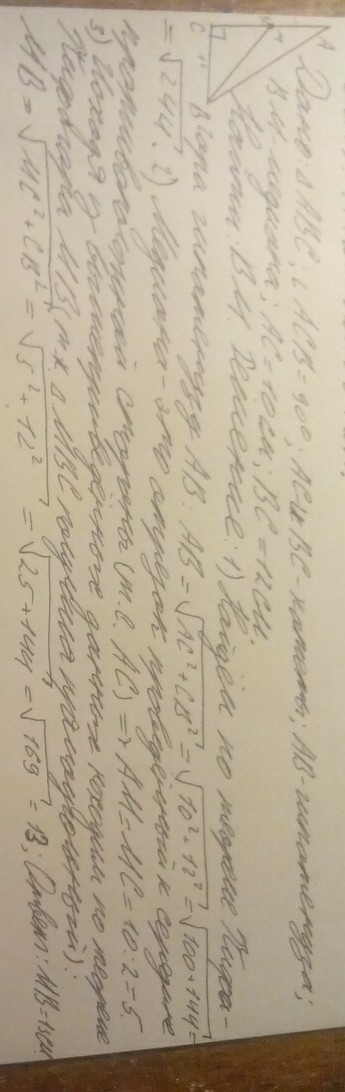 В прямоугольном треугольнике ABC с прямым углом C известны катеты AC=10см BC=12см. Найти медиану BM этого треугольника