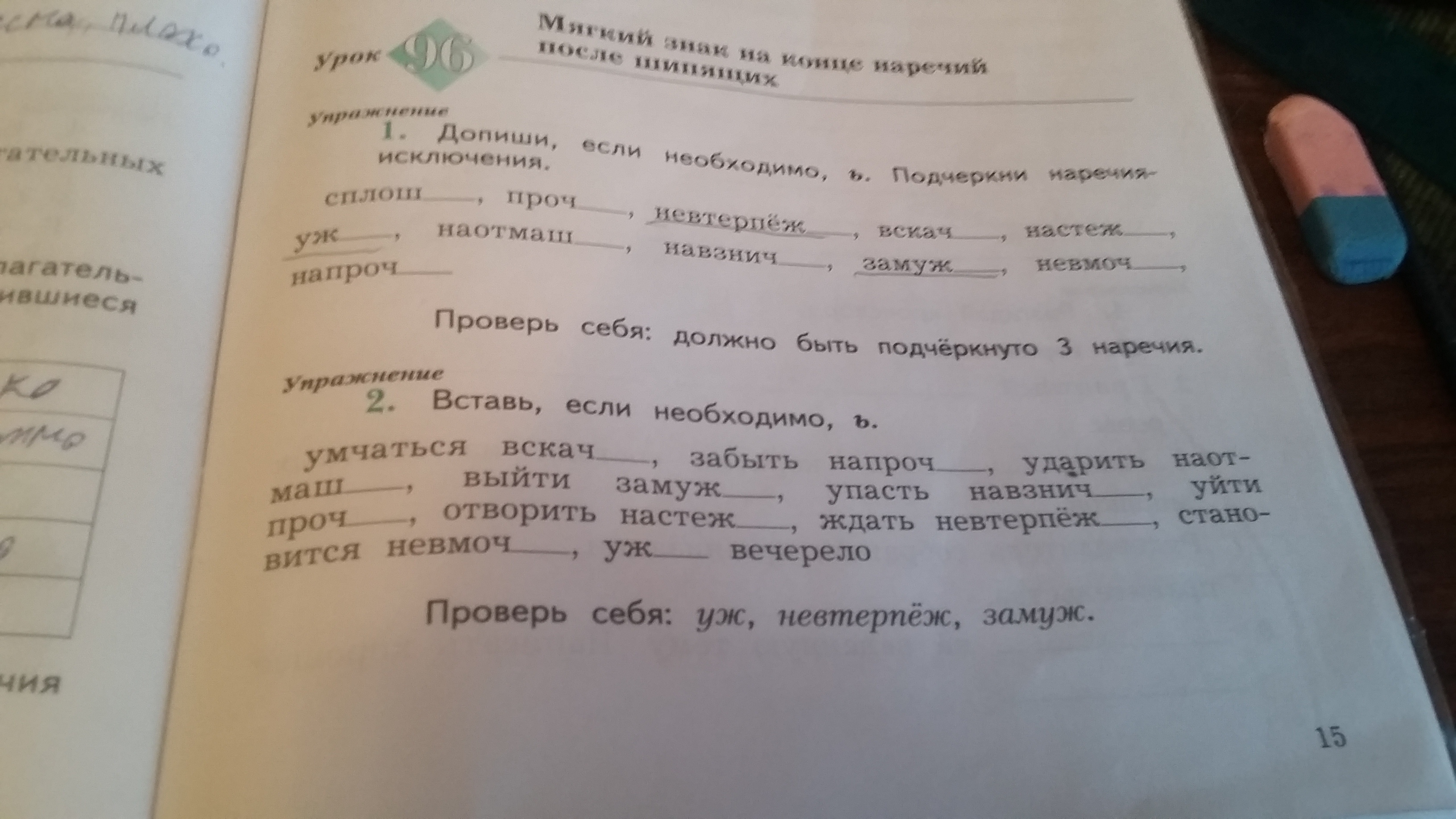 во всех словах пишется ь знак кроме слов уж.замуж.невтерпёж потому что эти слова исключения)))