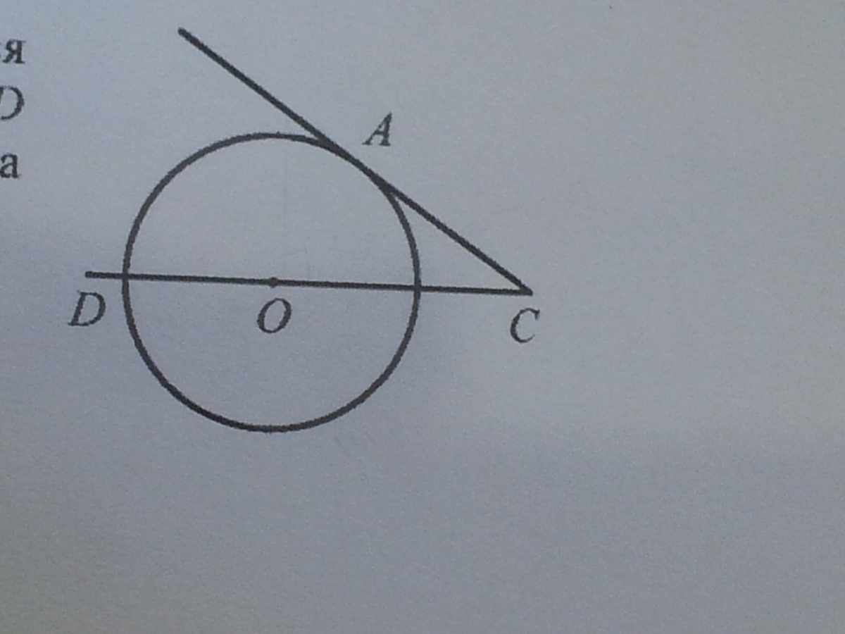 Найдите угол АОС,если его сторона СА касается окружности ,О-центр окружности ,а дуга АD окружности ,заключенная внутри этого угла ,равна 140º