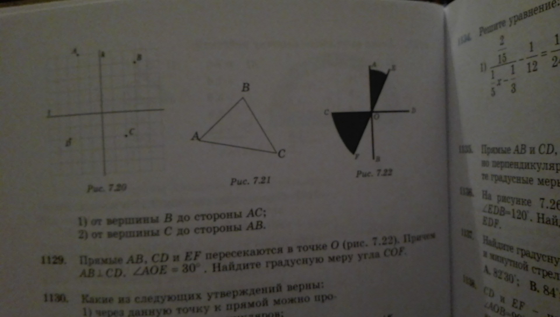 Угол СОВ равен, как известно, 90 градусов. Угол FOB равен углу АОЕ и составляет 30 градусов. Следовательно угол СОF равен 90-30=60 градусов.