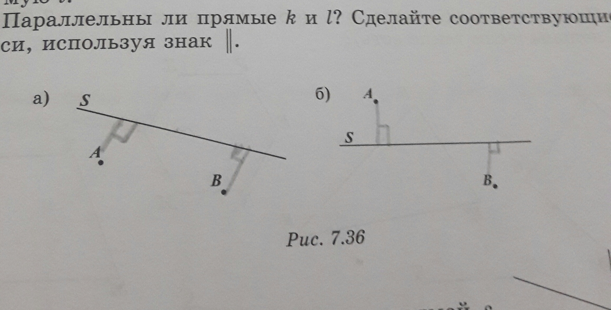 проведите в тетради прямую s вне прямой s выберите точки а и в как на рисунке 7.36 1 через точку а проведите к прямой с перпендикулярную прямую к