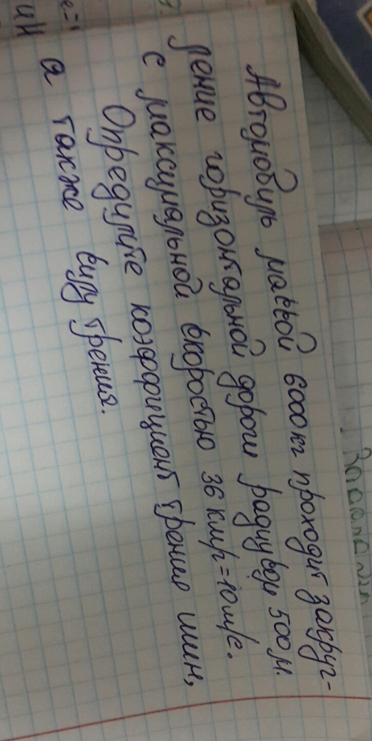 R=500 м Fц.с.=Fтр; или, распишем каждую силу: