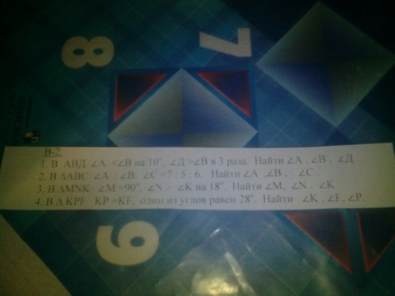 1. Пусть угол А = x-10, угол B = x, угол Д = 3х, тогда:
