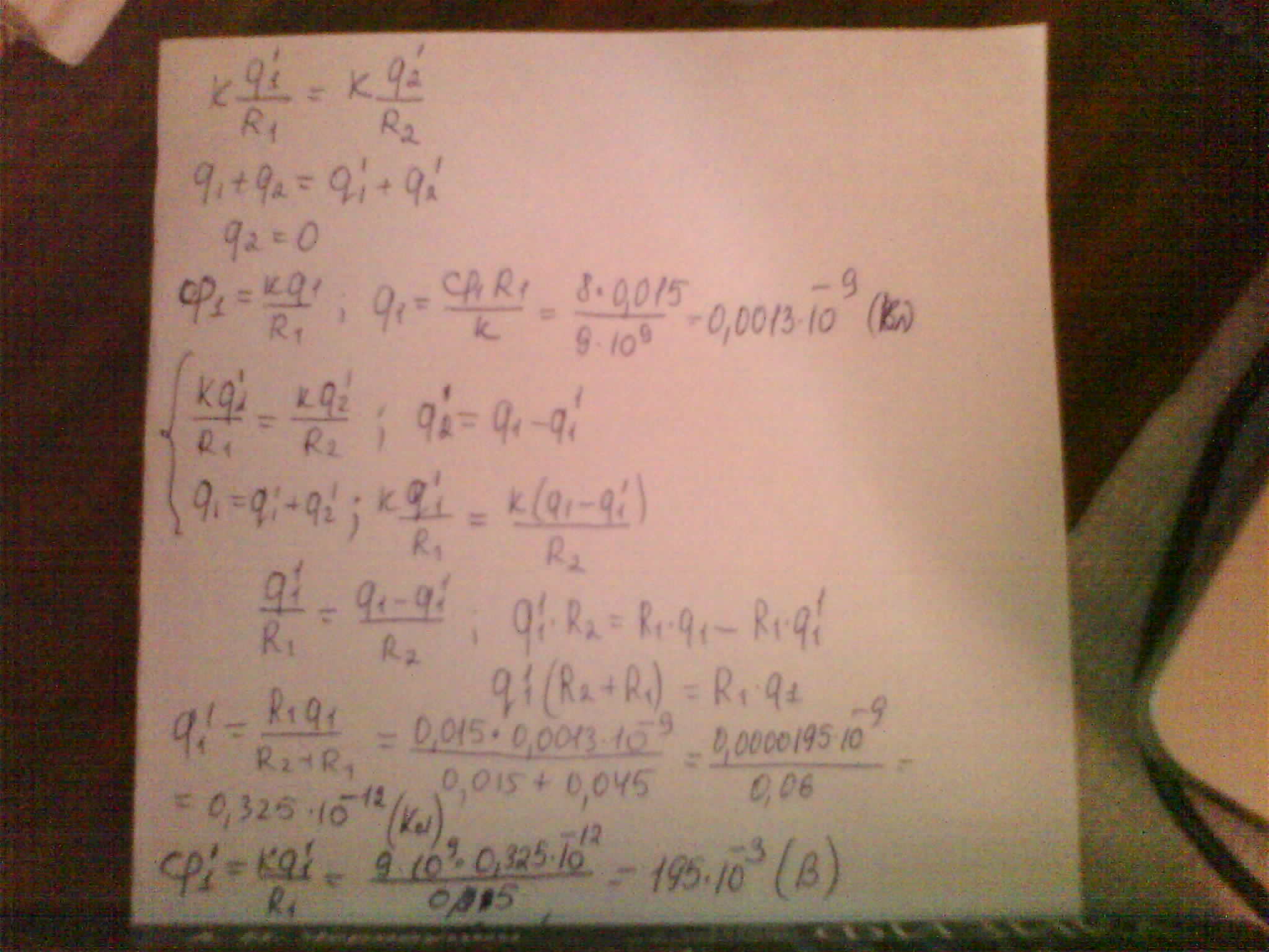 В2.Два проводящих шара, радиусы которых R1 = 15 мм и R2 = 45 мм, находятся на большом расстоянии друг от друга. Потенциал первого шара φ = 8 В, второй шар не заряжен. Чему будет равен потенциал первого шара, если шары соединить проводником?
