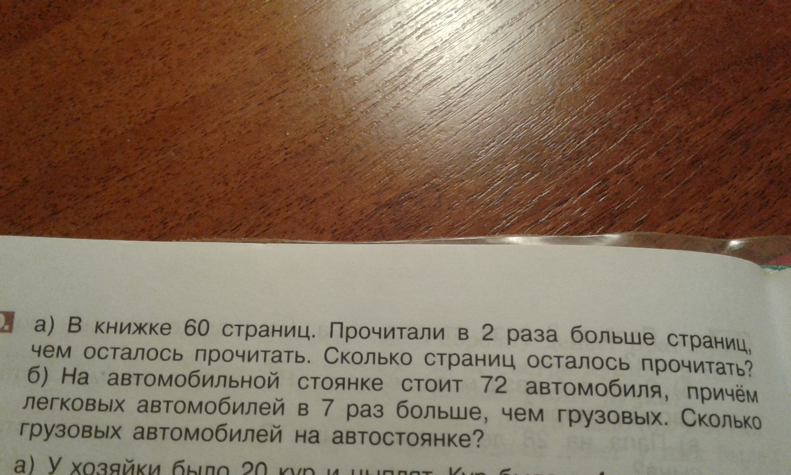 a) если в книге 60 страниц а прочитали в 2 раза больше чем осталось то 20 страниц осталось а 40 в 2 раза больше 20