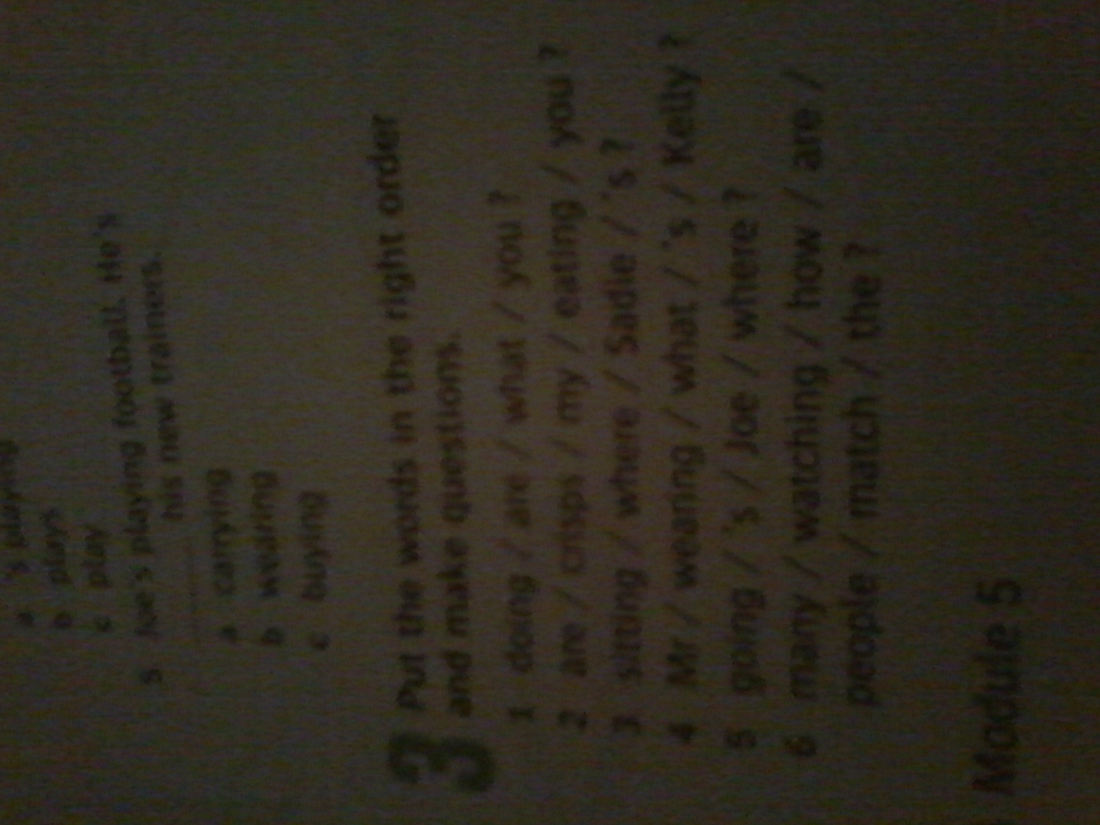 What are you doing? Are you eating my chips? Where's Sadie sitting? What's Mr Kelly weaning? Where is Joe going? How are many people watching the match?