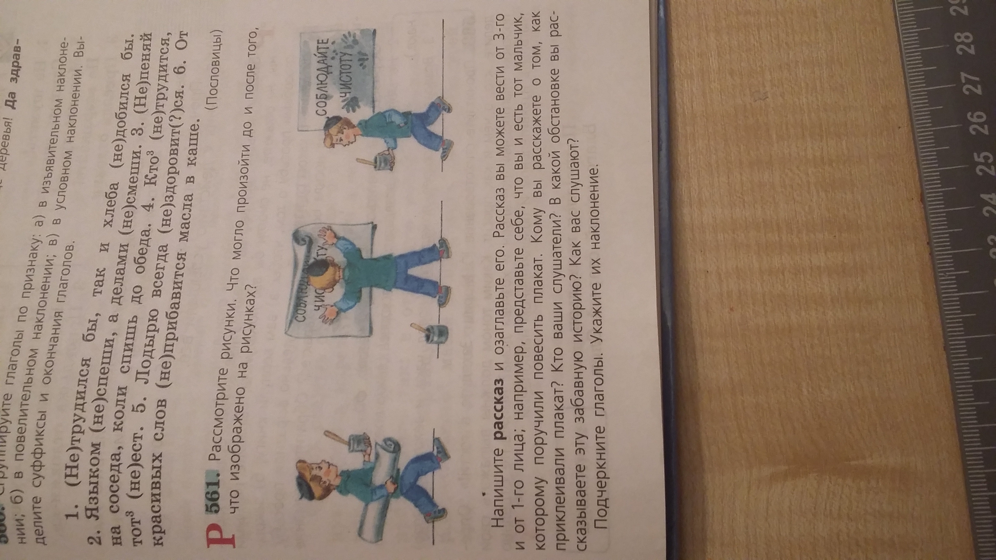 Рассмотрите рисунки. Что могло произойти до и после того, что изображено на рисунках? Напишите рассказ и озаглавьте его. Рассказ вы можете вести от 1-го и от 3-го лица; например, преставьте себе, что вы и есть тот мальчик, которому поручили повестить плакат. Кому вы расскажете о том, как вы приклеивали плакат? Кто ваши слушатели? В какой обстановке вы рассказывайте эту забавную историю? Как вас слушают?