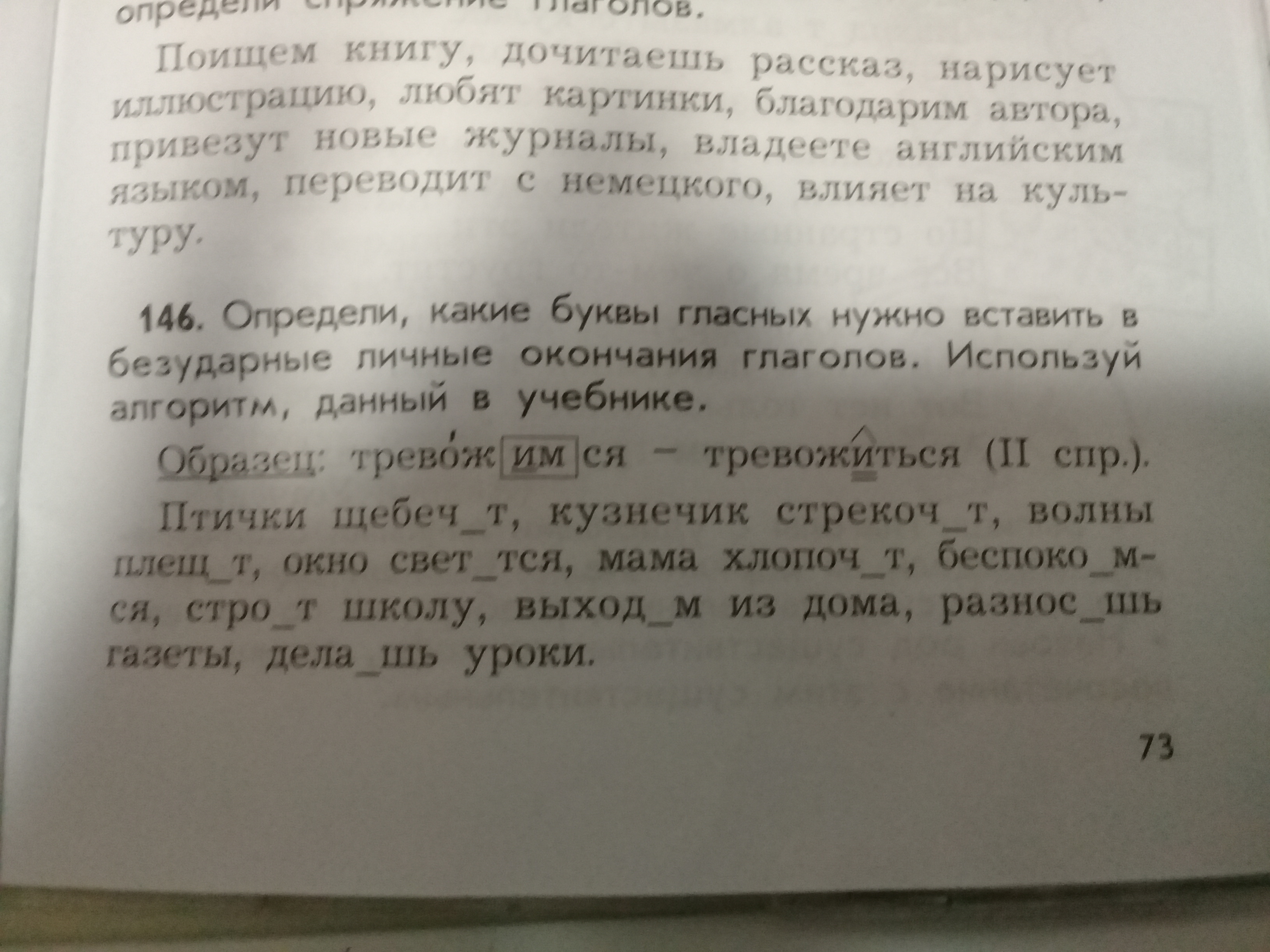 птички щебечут,кузнечик стрекочЕт,волны плещут, окна светятся,мама хлопочет, беспокоИмся ,строят школу,выходим из дома, разносишь газеты,делаешь уроки