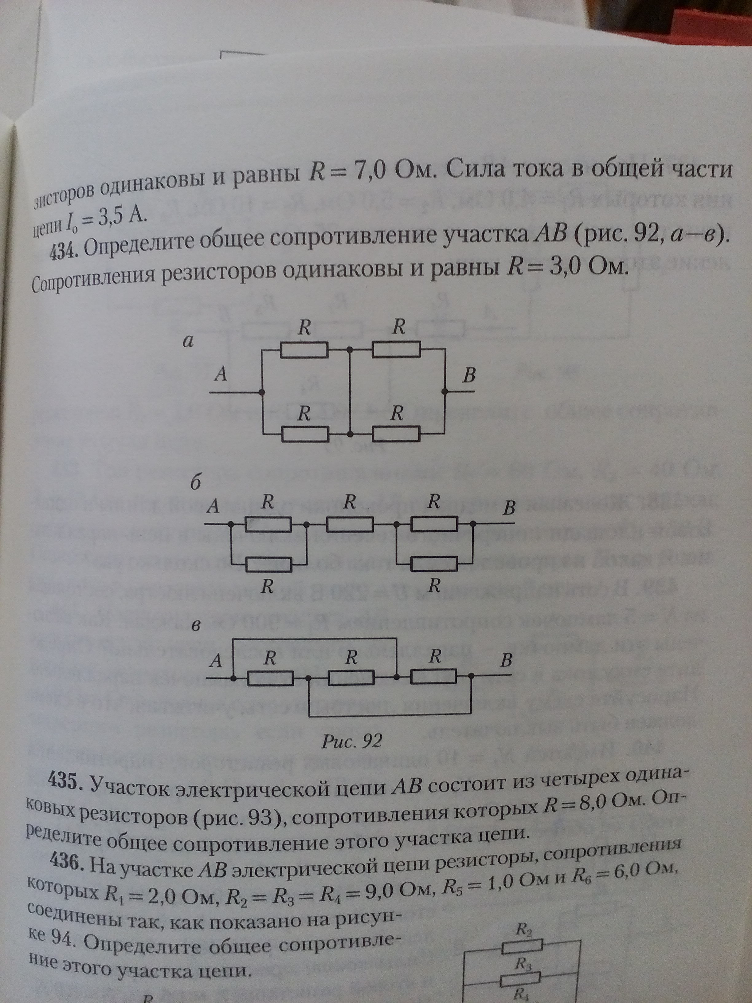 Помогите пожалуйста.Определите общее сопротивление участка АВ . Сопротивление резисторов одинаковы и равны R =3,0 Ом.