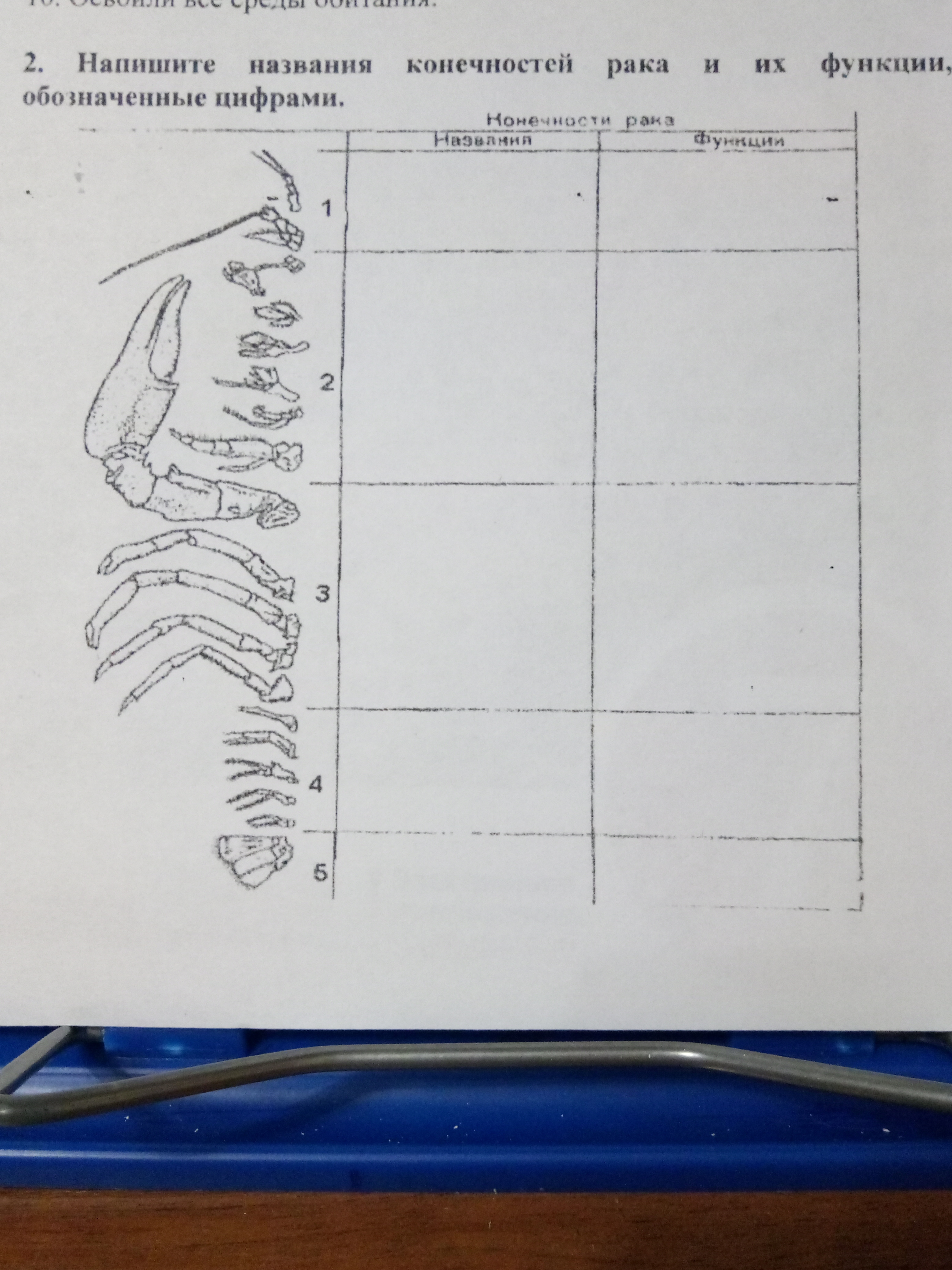 3) с помощью клешней рак захватывает пищу и передвигается, остальные конечности тоже предназначены для передвижения