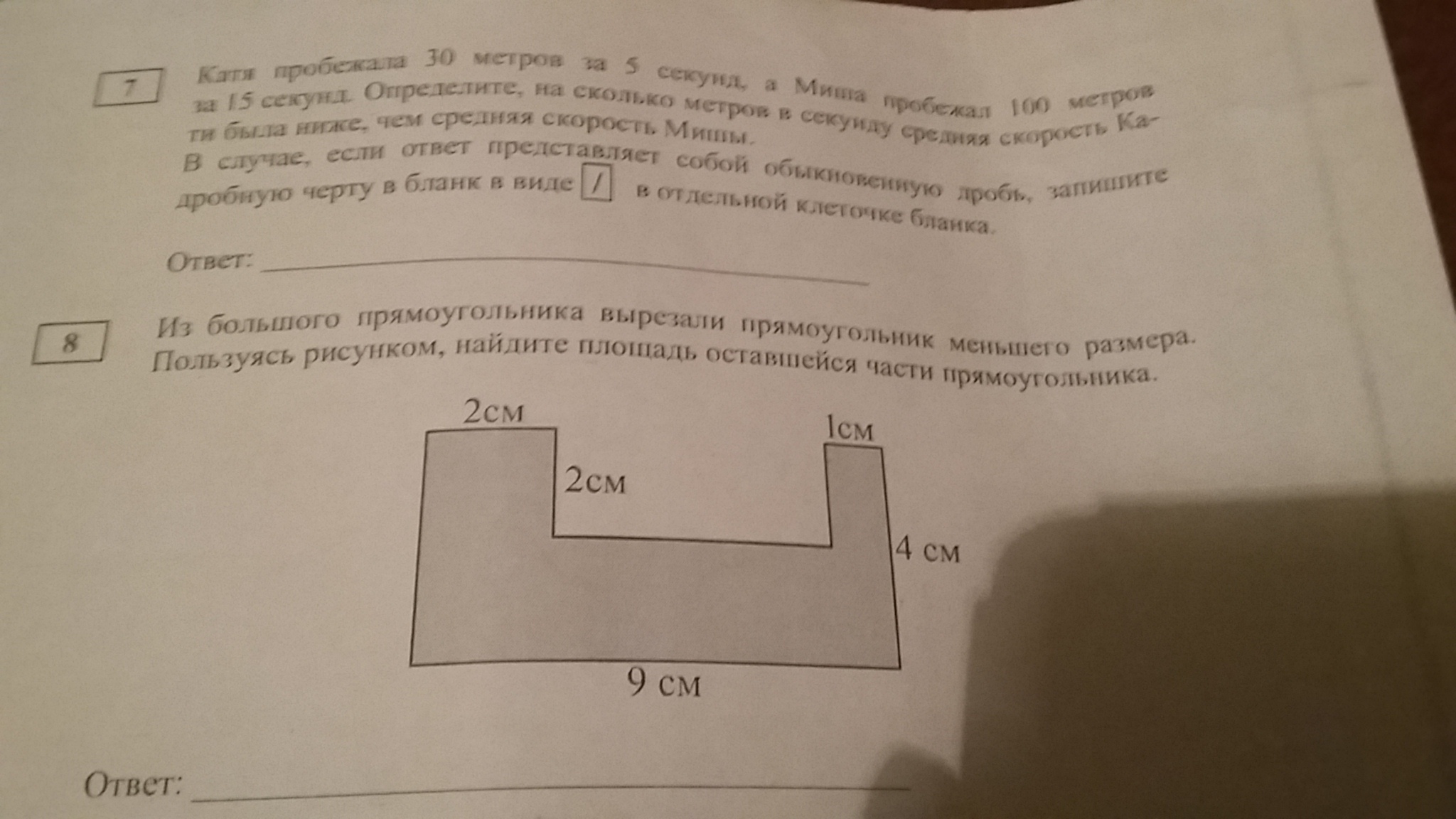 Из большого прямоугольника вырезали прямоугольник меньшего размера .