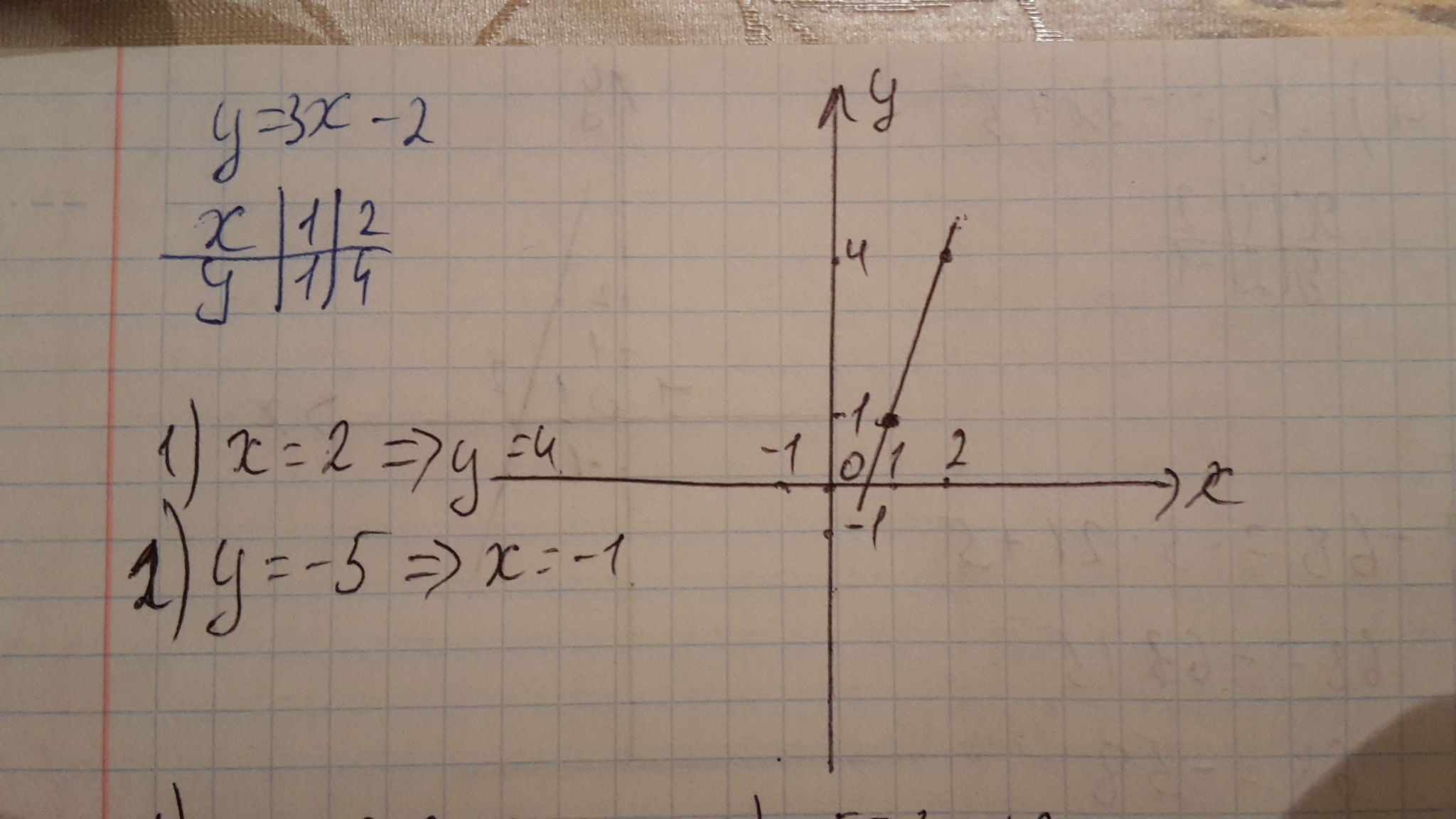Постройте график функции у=3x-2 пользуясь графиком найдите