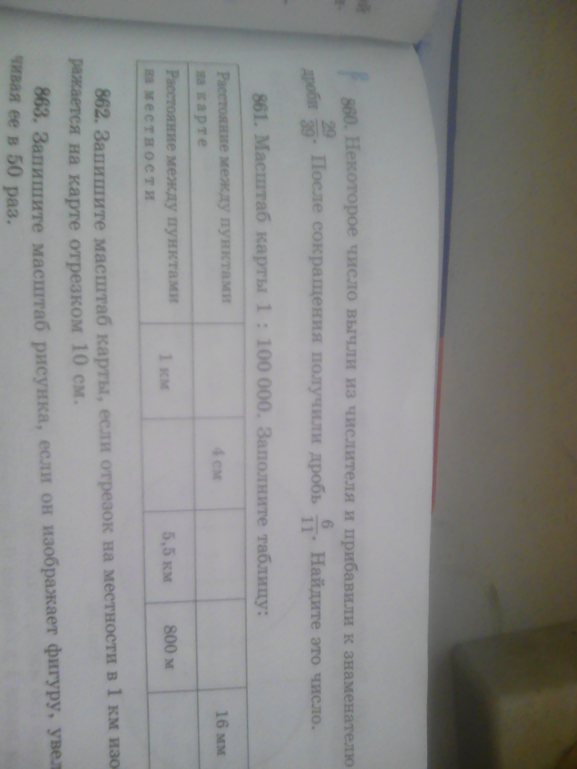 861. Масштаб карты 1: 100000. Заполните таблицу