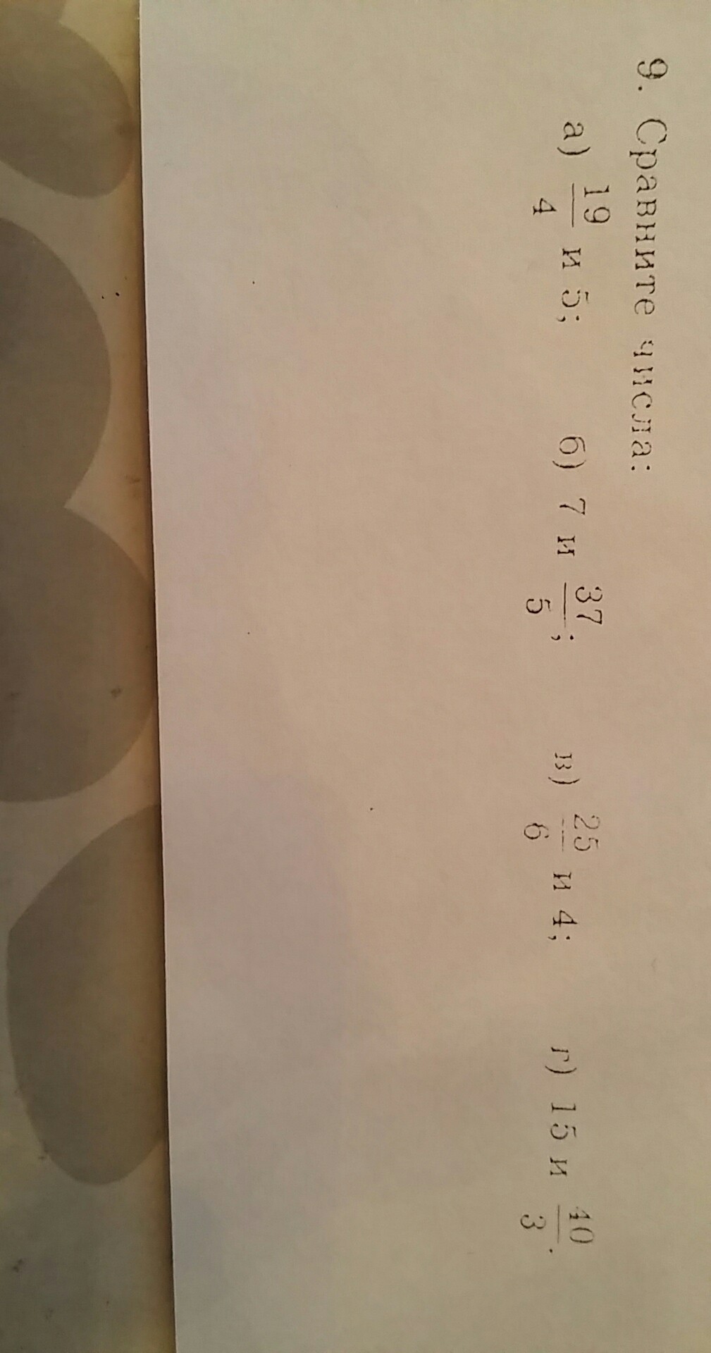 19/4 < 5, так как если перейти от неправильной дроби к правильной, то будет 4 целых 3/4 (если в десятичную переводить, то 4, 75), а это меньше пяти.