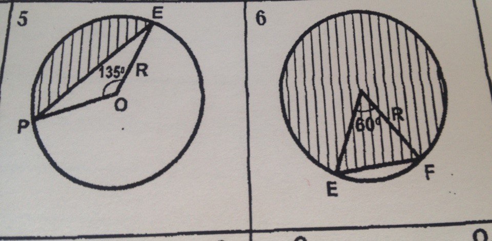 Площадь искомого сегмента S6=S4-S5=0,375πR²-0,25√2R²=