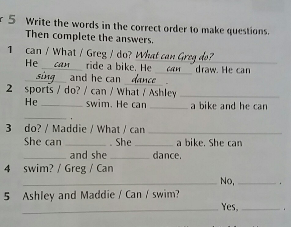 3. What can Maddie do? - She can swim. She can ride a bike. She can sing and she can dance.