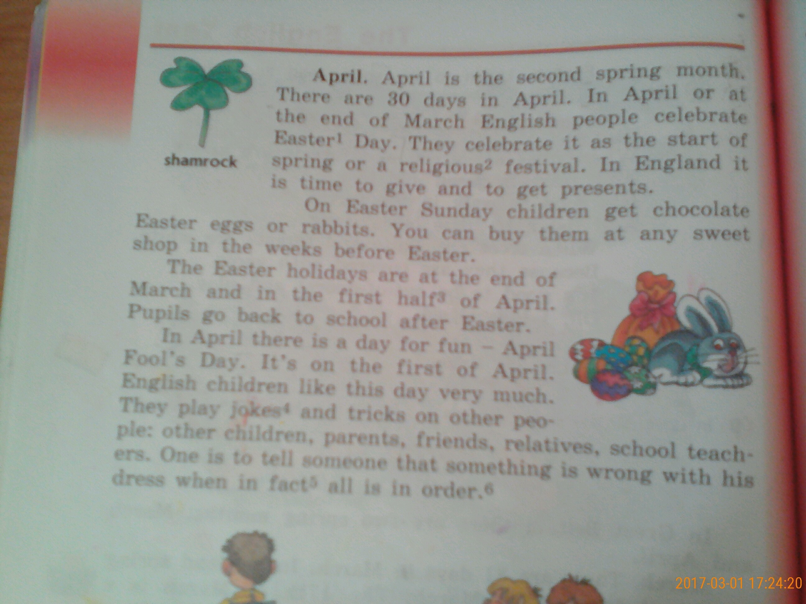 Апрель. Апрель - второй месяц весны. В апреле 30 дней. Пасху англичане празднуют или в марте или в апреле. Этот религиозный праздник начинает весну. В Англии это время дарить подарки.