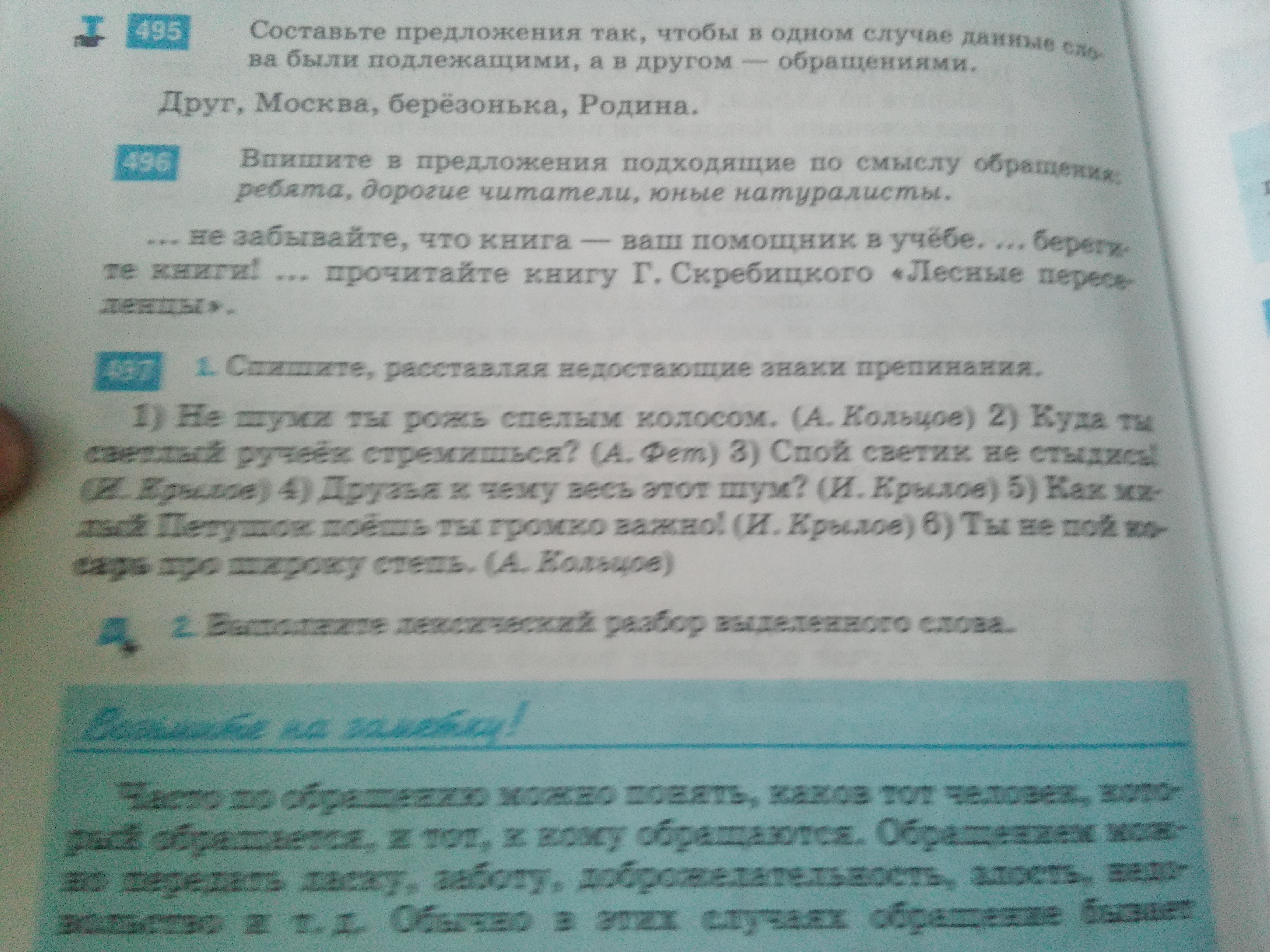 Не шуми ты, рожь, спелым колосом. Куда ты, светлый ручеёк, стремишься? Спой, светик, не стыдись! Друзья, к чему весь этот шум? Как, милый Петушок, поешь ты громко, важно! Ты не пой, косарь, про широку степь.